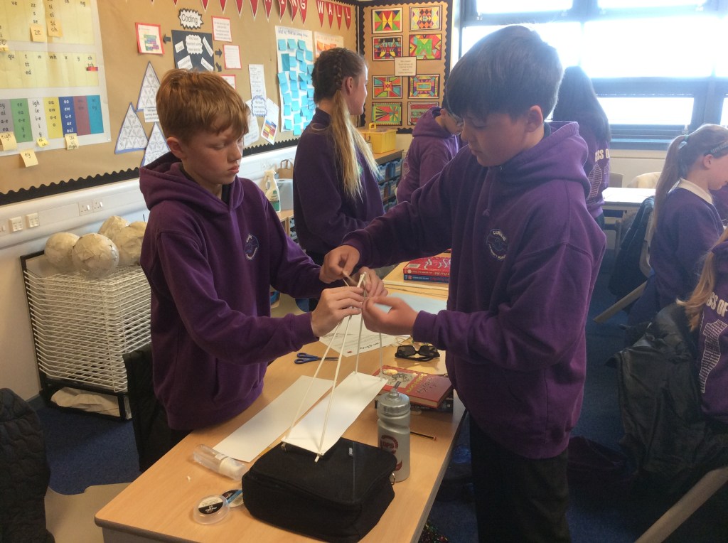We had to make them out of paper strips, paper straws, a piece of string, some cellotape, 2 pieces of card, 2 pieces of paper and 2 elastic bands.