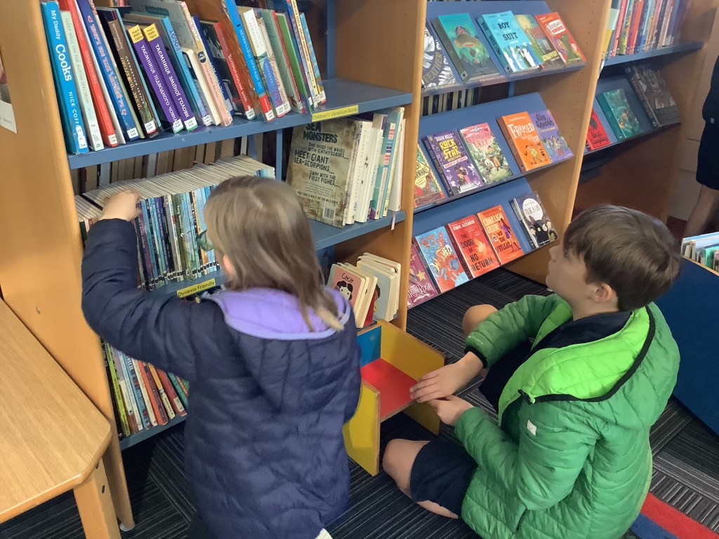 P5 at Currie Primary School took a trip up to our local library on Lanark Road. We played some games, for example we split into groups and the librarian told us what type of book to find. We also got to look for and borrow up to twelve books from the library. It is important that people keep borrowing books in order to keep the library open for the local community. The library has a great selection of children’s books for all ages and interests. We will be visiting every three weeks so we can return our books and borrow more. We love reading!