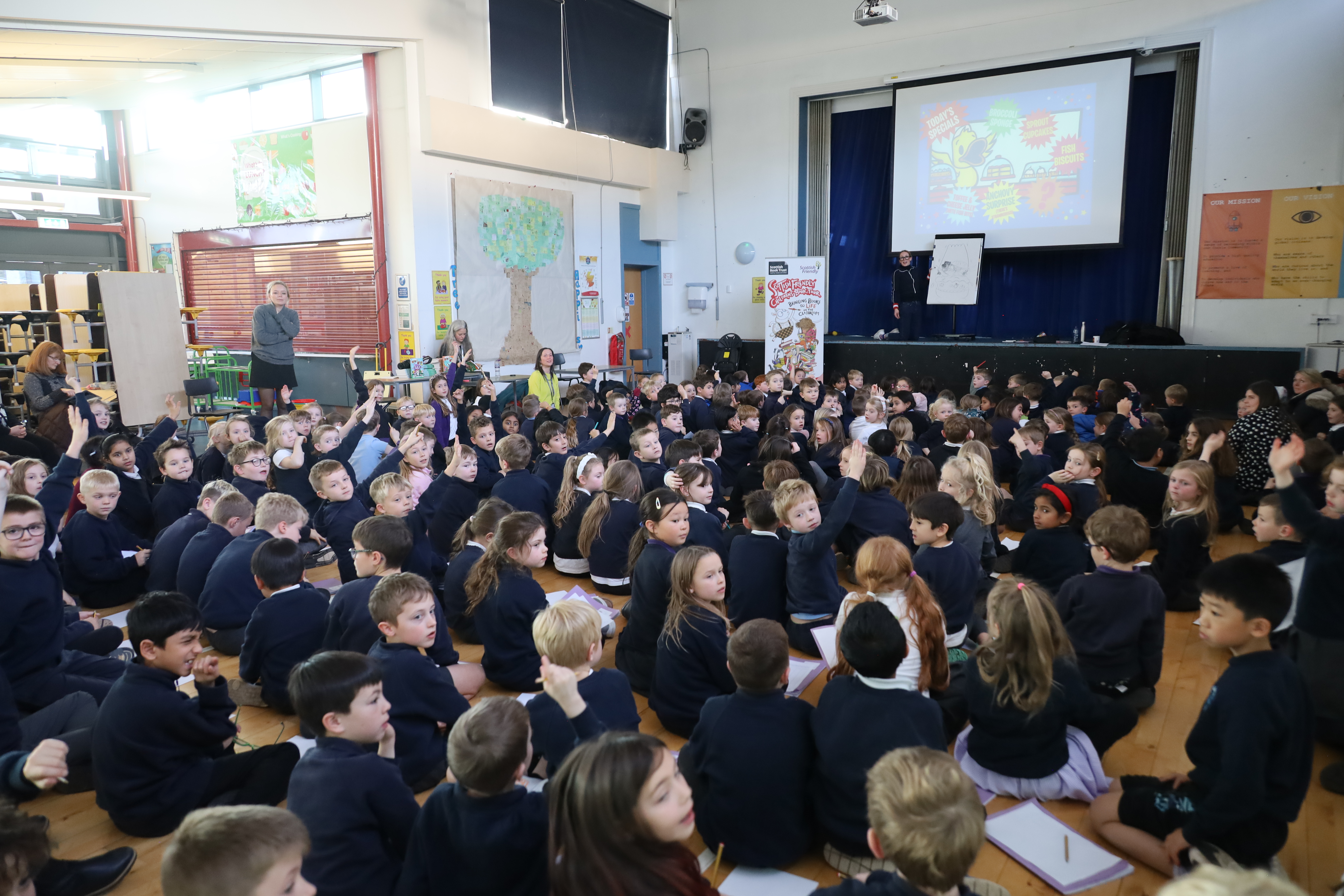 As part of our celebrations for Scottish Book Week Currie Primary School were delighted to welcome author and illustrator Sophy Henn to school. Our pupil led Book Club and Primaries 1-4 were invited to meet Sophy in the Main Hall and learn about her style of illustration and the books she has created. We got to find out about how Sophy gets her ideas, the characters she has created, and we even got to make some of our own. We all did a fun draw along with Sophy and our finished characters looked great.