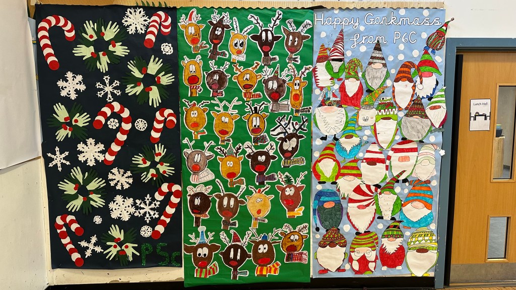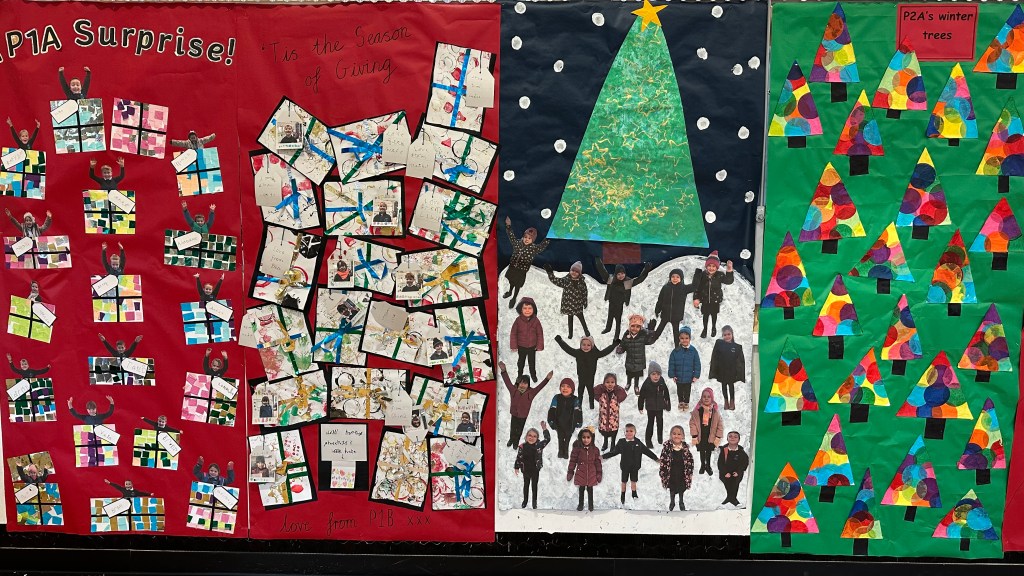 One of my favourite jobs in school each year is putting our Christmas Banners up in the hall. We have such creative and talented staff and pupils, each year they are just amazing and this year is no different! Come along to our P6 Christmas Market on Thursday between 4 pm and 6 pm and see them for yourselves!