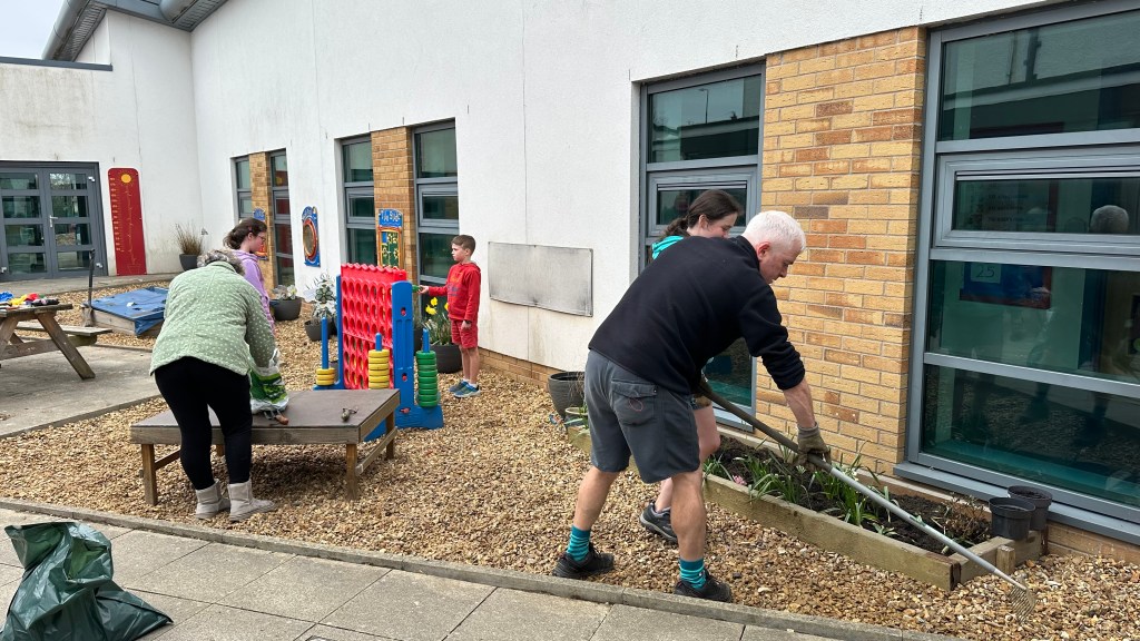 A big thank you to everyone who came along to help tidy up our gardena areas yesterday. we got lots done – new gravel laid in the atrium, the vegetable garden at the back and borders at the front weeded and also the shed tidied up! If you are thinning out plants in your garden in the next few weeks we would love some plants or cuttings to plant in our garden.