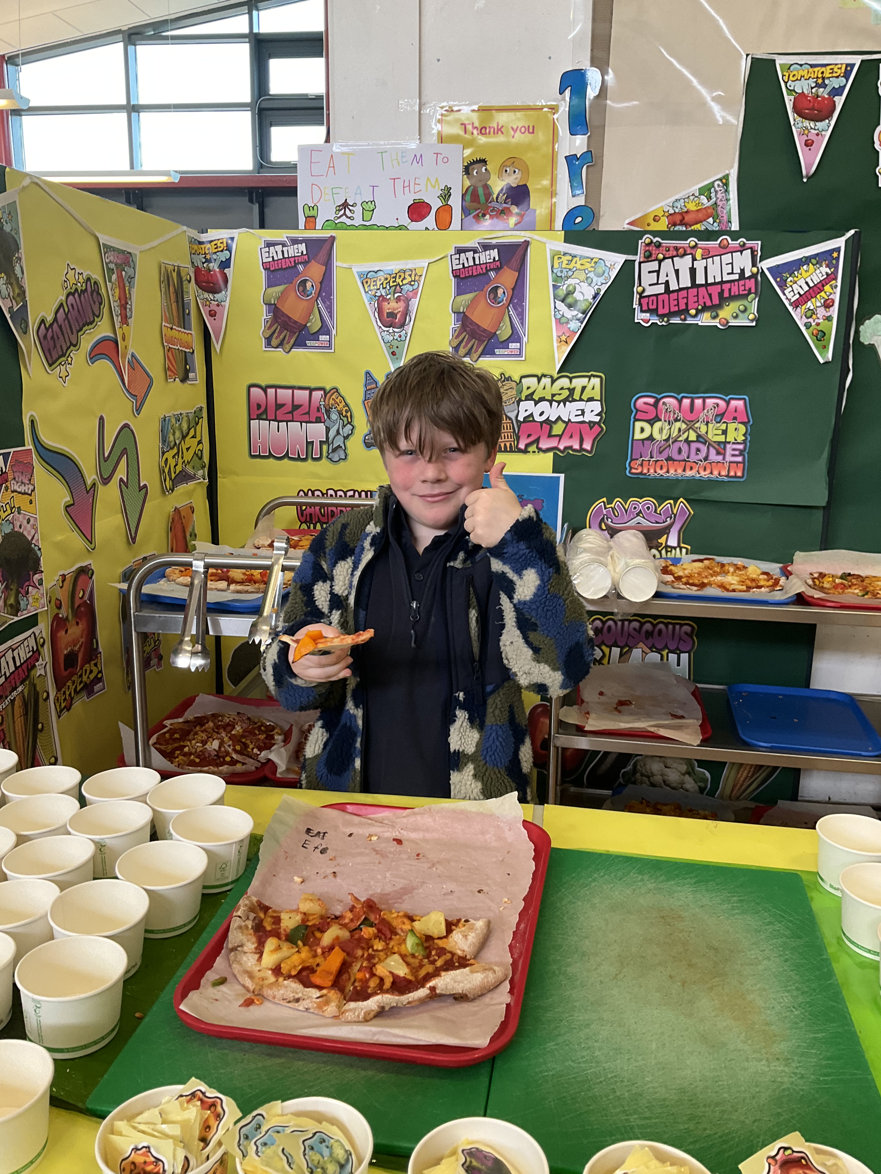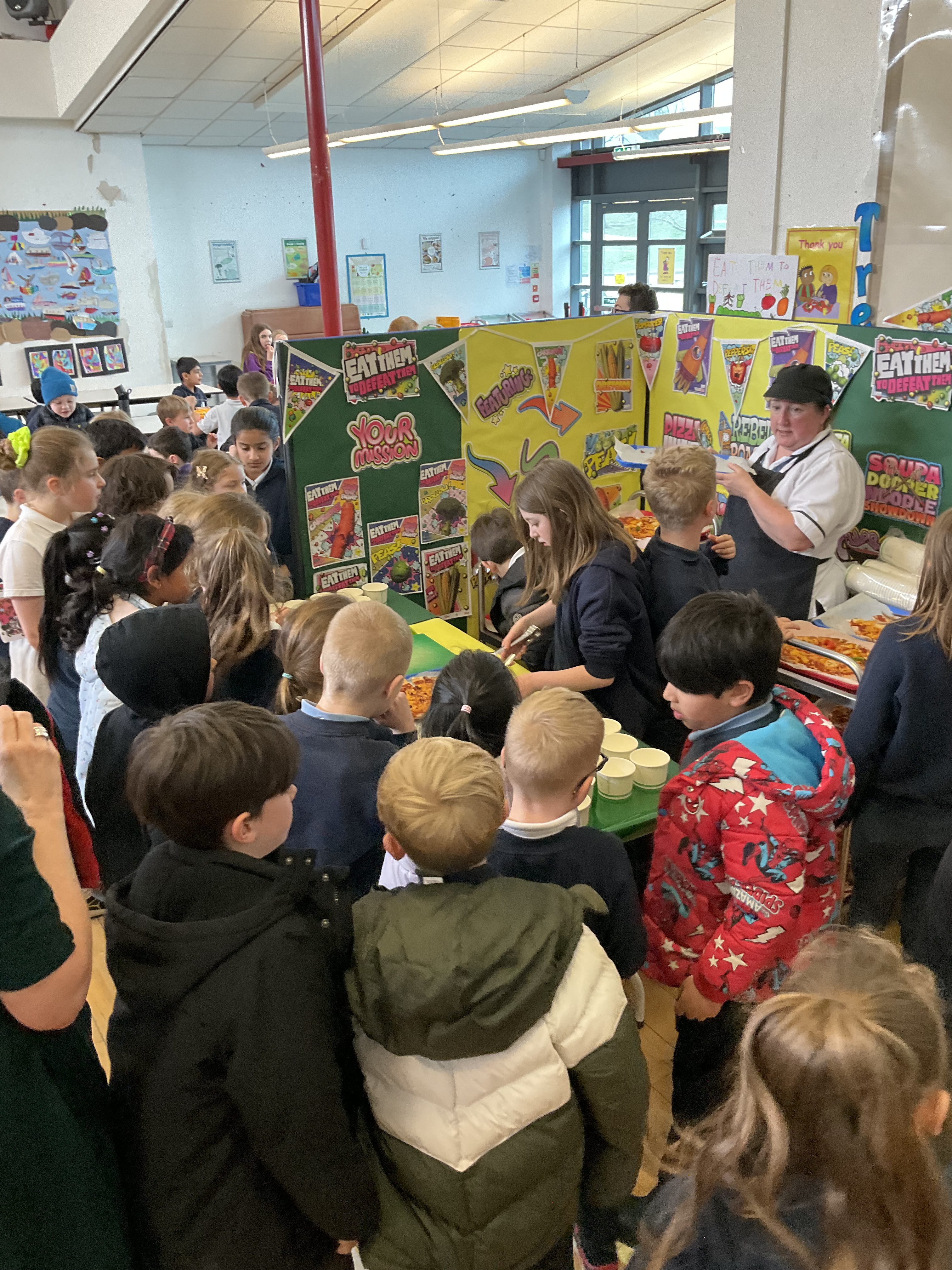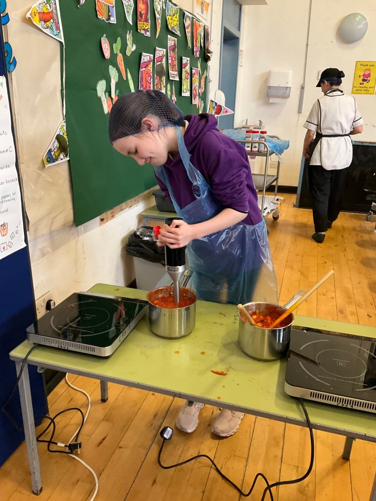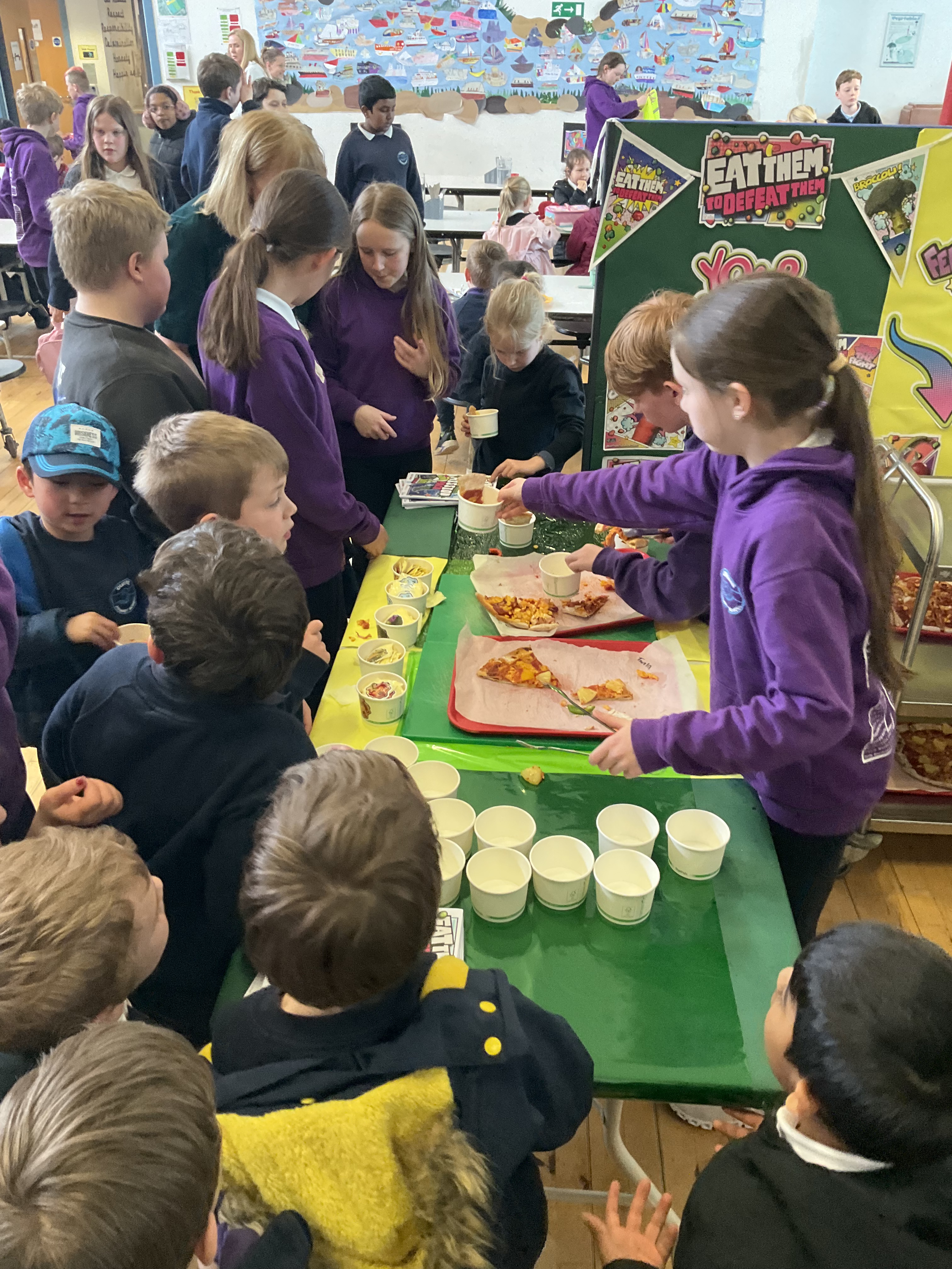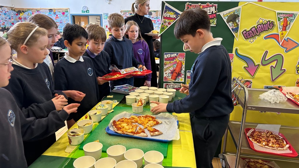 Our ‘Eat Them To Defeat Them’ pupil group enjoyed a morning working with our dinner ladies last week making pizza with a range of toppings for us all for lunch and then serving it to us. The pizzas were delicious and very popular! A huge thank you to Miss Blackwood and all of the ladies in our dinner hall for making this happen for our pupils.