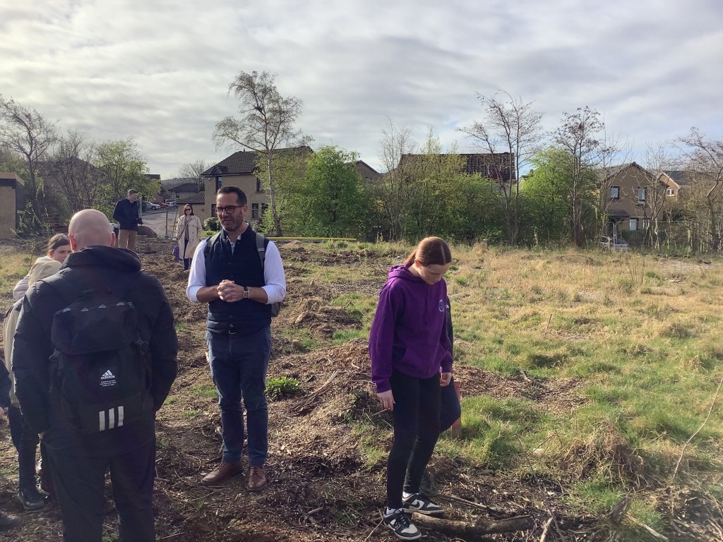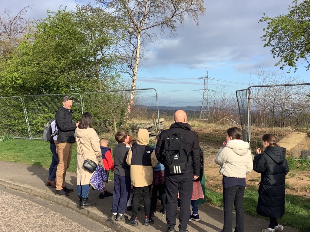 On Monday we went to the building site of the new houses in Currievale Park. We went to the building site to see where the houses will be built and to see all the nature and eco-friendly things there. We saw a squirrel up a tree. We took photos and got ideas for our school project.