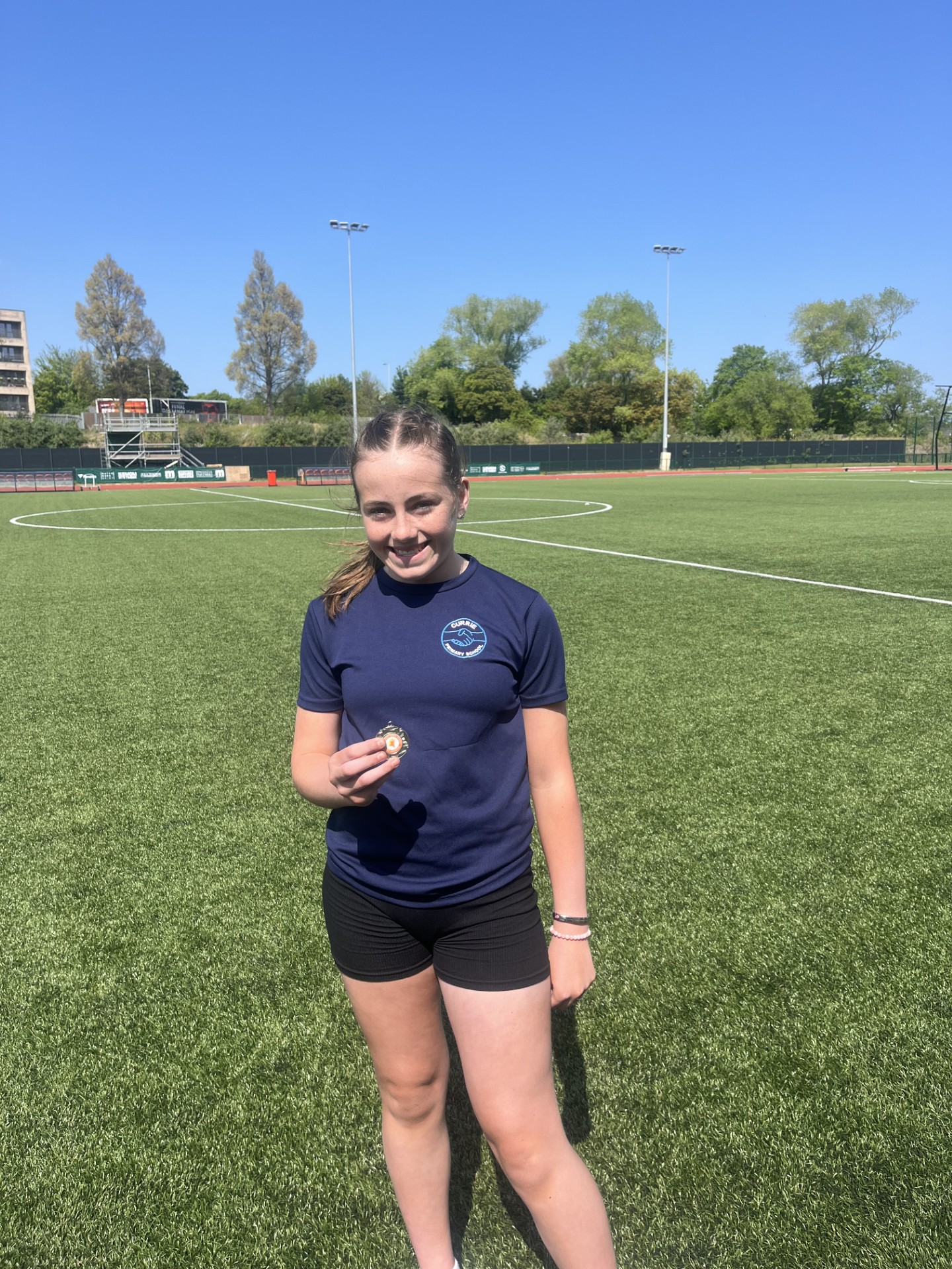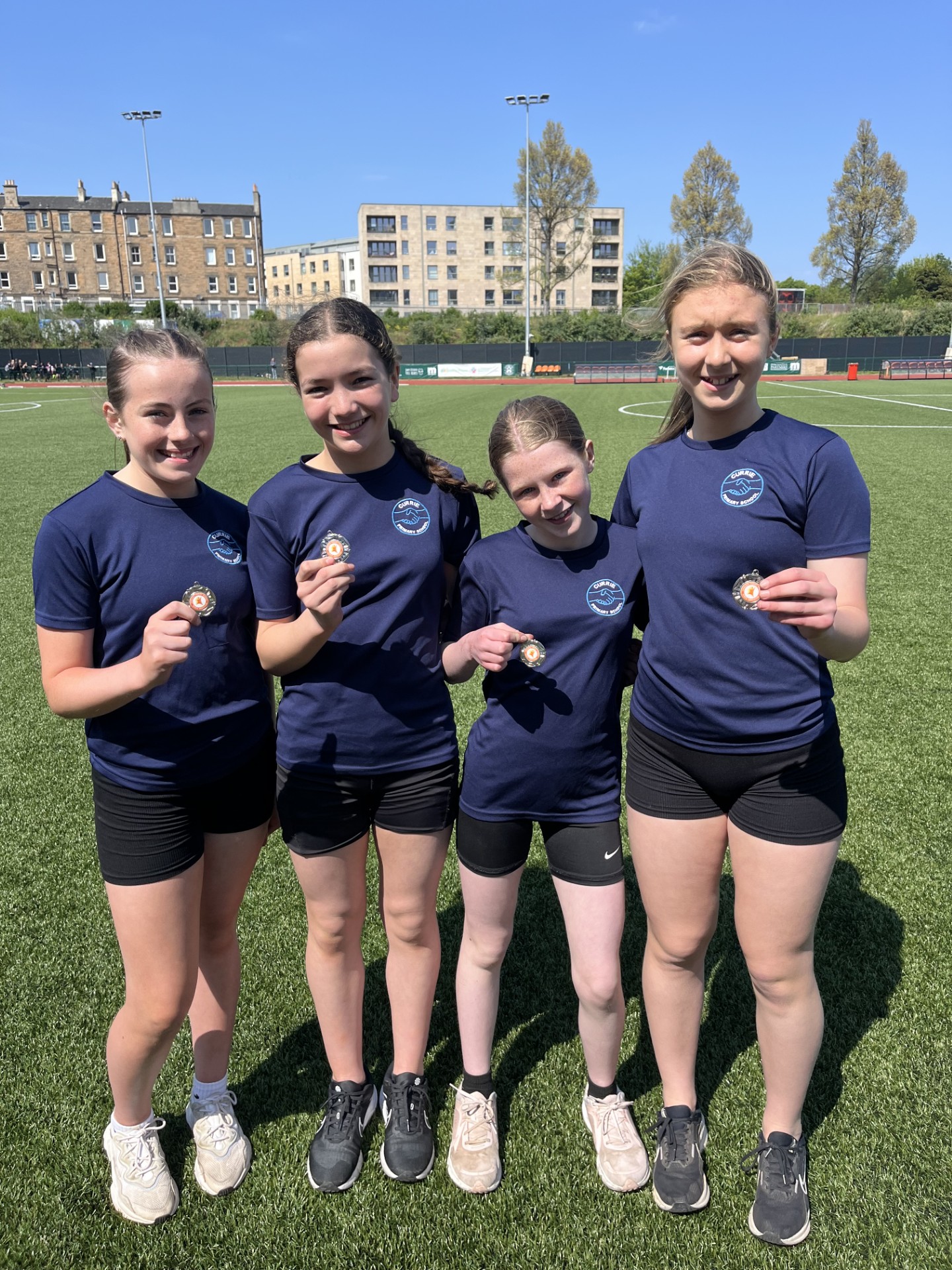 13 pupils competed in the Interscholastics on Monday. This was our best result in my time at Currie Primary. We managed to qualify for the Mixed 4x100m Relay Final, Girls 4x100m Relay Final and Girls 80m Final. We managed to get 2nd place overall, a silver, in both the Girls 4x100m Relay and Girls 80m. This was a superb effort as it was against both state and private schools from across Edinburgh.