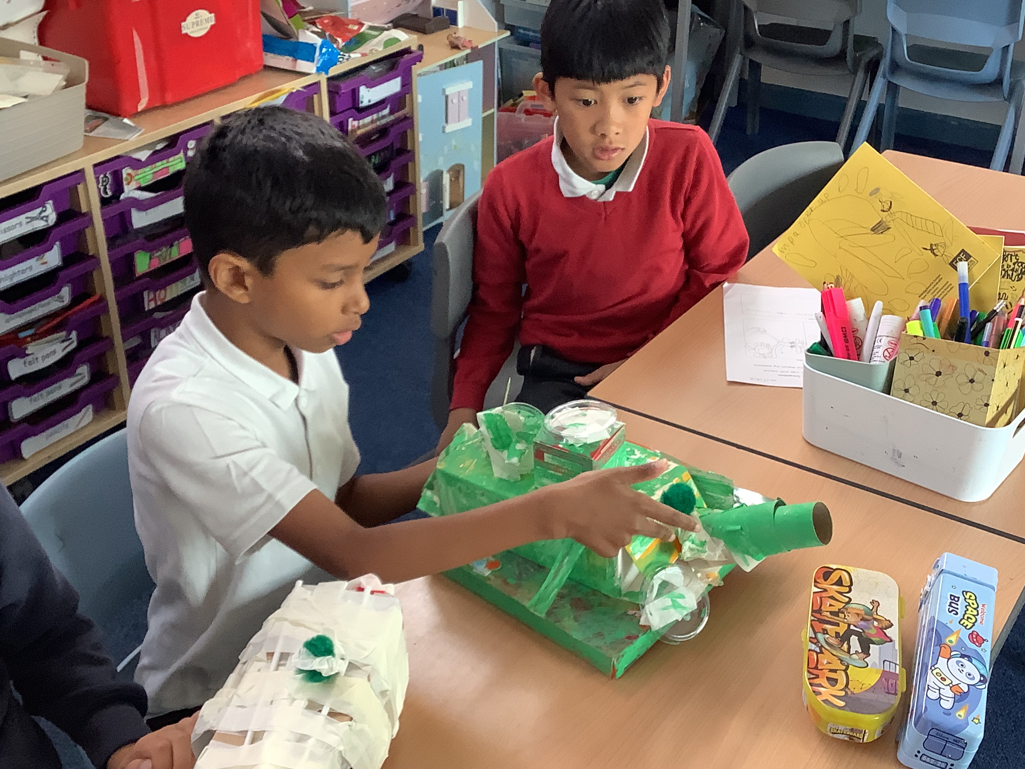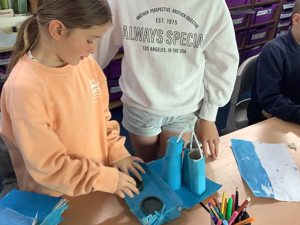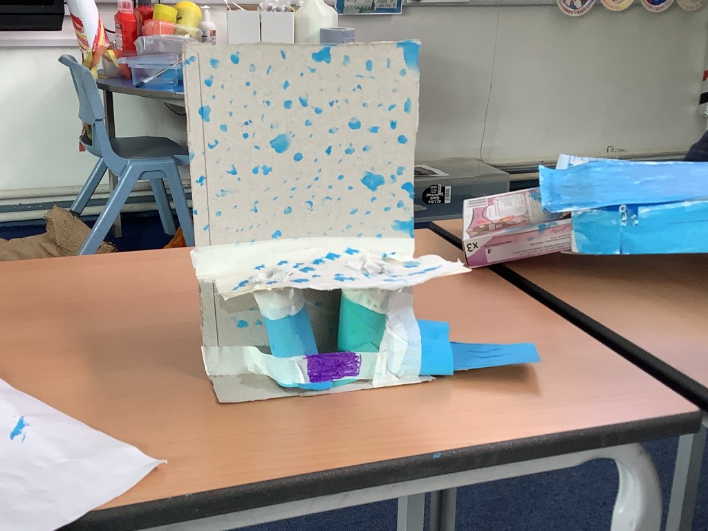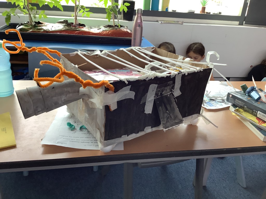 We built models that could, in real life, save farms and people from droughts and floods. This is part of Global Goal 13, to help countries with natural disasters. We used junk to build the models after we planned our designs and thought about what they would be made from in real life.