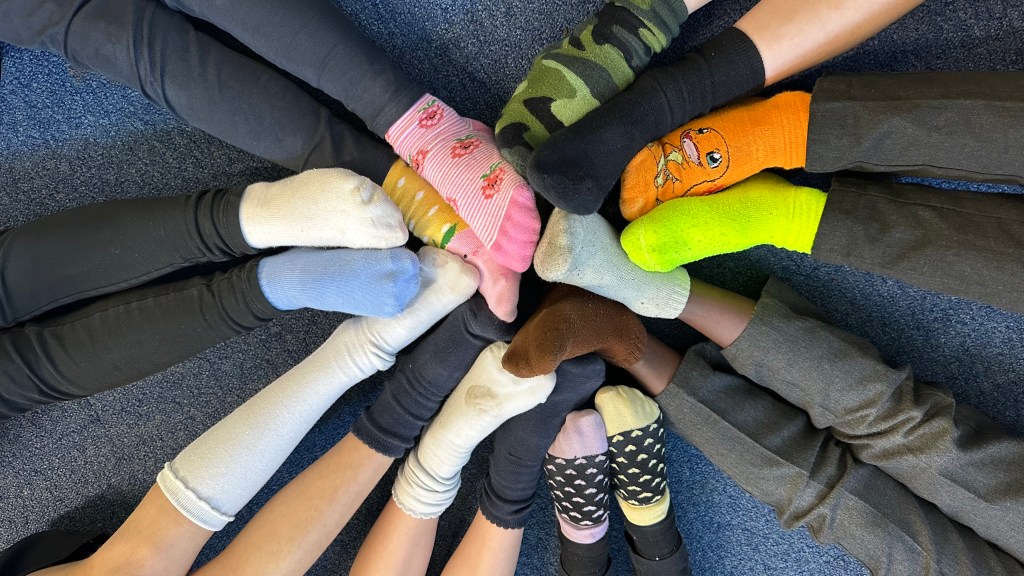 We marked anti-bullying week in school by wearing odd socks on Monday to celebrate what makes people unique and different. Classes were all involved in writing about and discussing bullying and in using our super powers to speak out. We finished up looking at our super powers in assembly and listening to a poem that P7 performed.