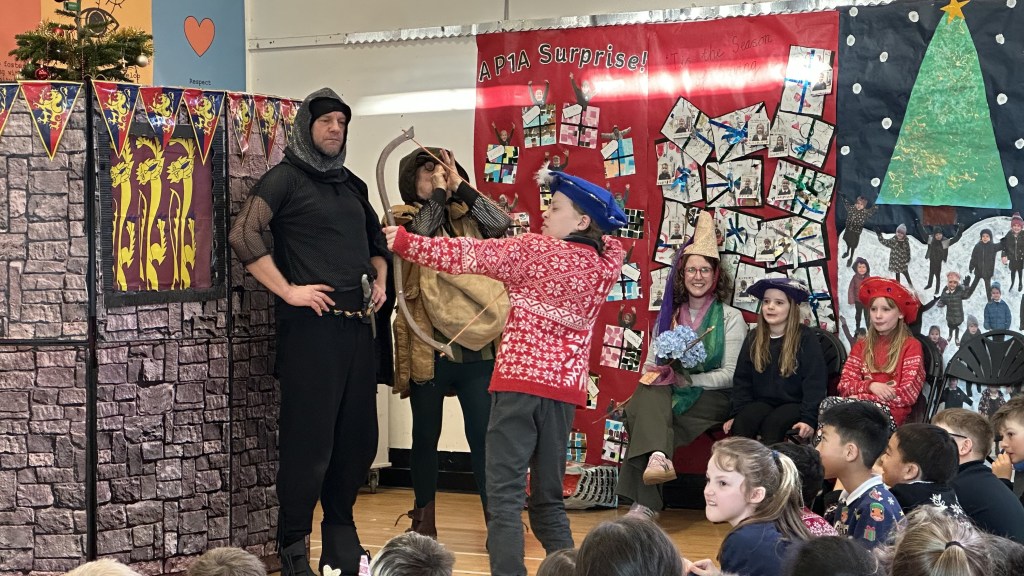 We enjoyed a visit from Mac-A-Story this morning for our Christmas Panto performances. It was a really interactive Panto with lots of pupil and staff involvement. Special well done to Mr Mackenzie and Mrs Holt for playing the part of Maid Marion in the different performances. A big thank you from everyone in school to the PTA for paying for these performances for us.