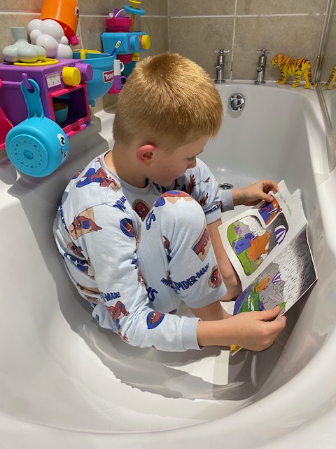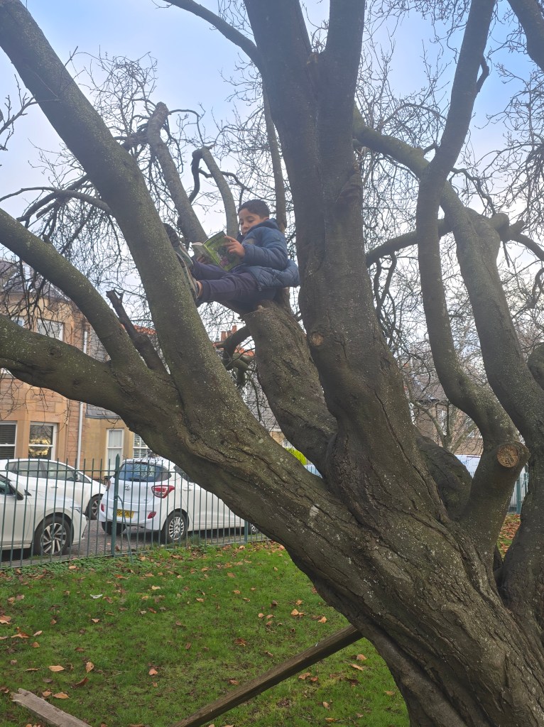 Book Week Scotland was lots of fun in school this week with lots of book related activities happening including inter-year group work which was lovely to see. Thank you to everyone for sending in the ‘reading in strange places’ photos. We have loved seeing them. These are just a few. Great to see Preet taking part while she is away! Pop into school and see the rest on the screen in our entrance!