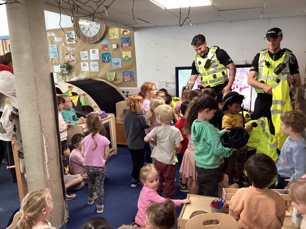 Today we were very lucky to have PC James May and his colleague visit us. They talked about the project and then let the children try on uniforms and handcuffs as well as getting a turn in the police van. What a great morning we had!