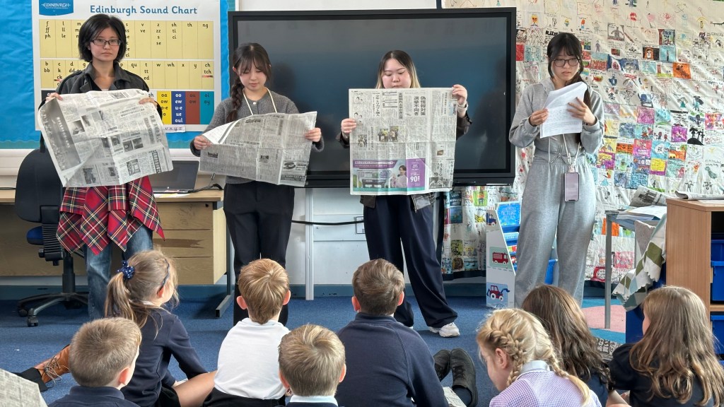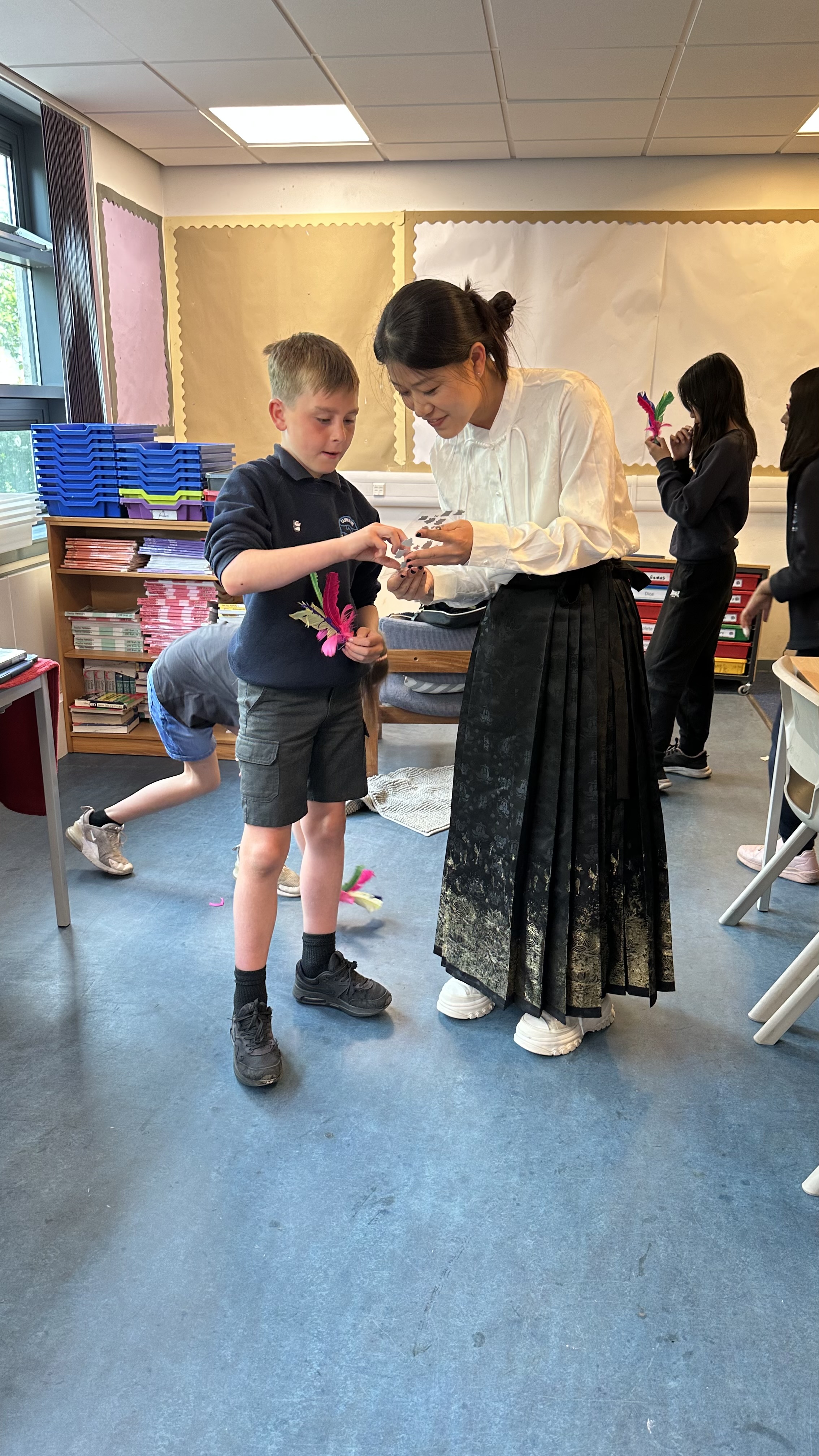 We enjoyed hosting some students and staff from Tokyo Kaesi University in school this morning. Mrs Sloan from our Nursery gave the students a talk about and a tour of our Nursery before they visited our P1 classes and showed them how to make dragonfly toys from recycled juice containers and straws. After break the students gave our P3 classes a short presentation on Japan and showed everyone how to make a Samari helmet from newspaper. The students also taught us all a few words of Japanese.