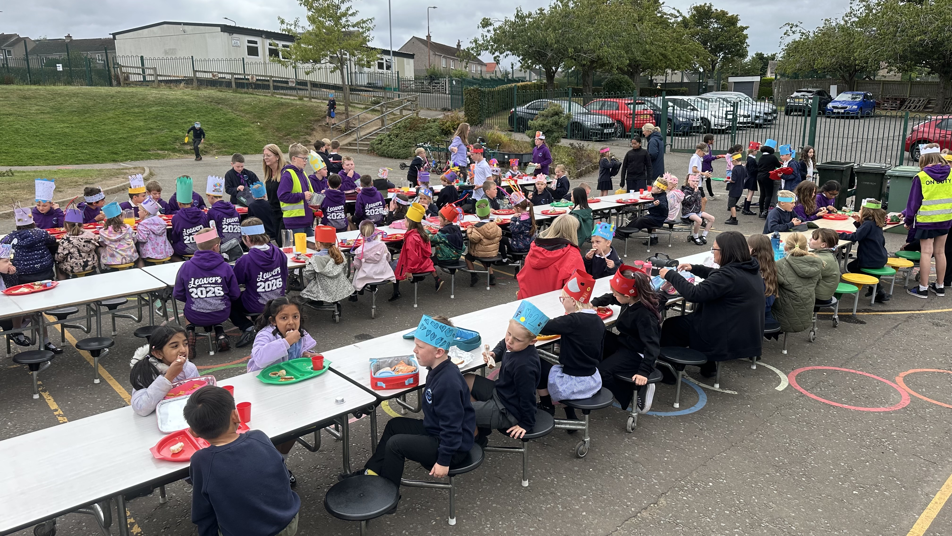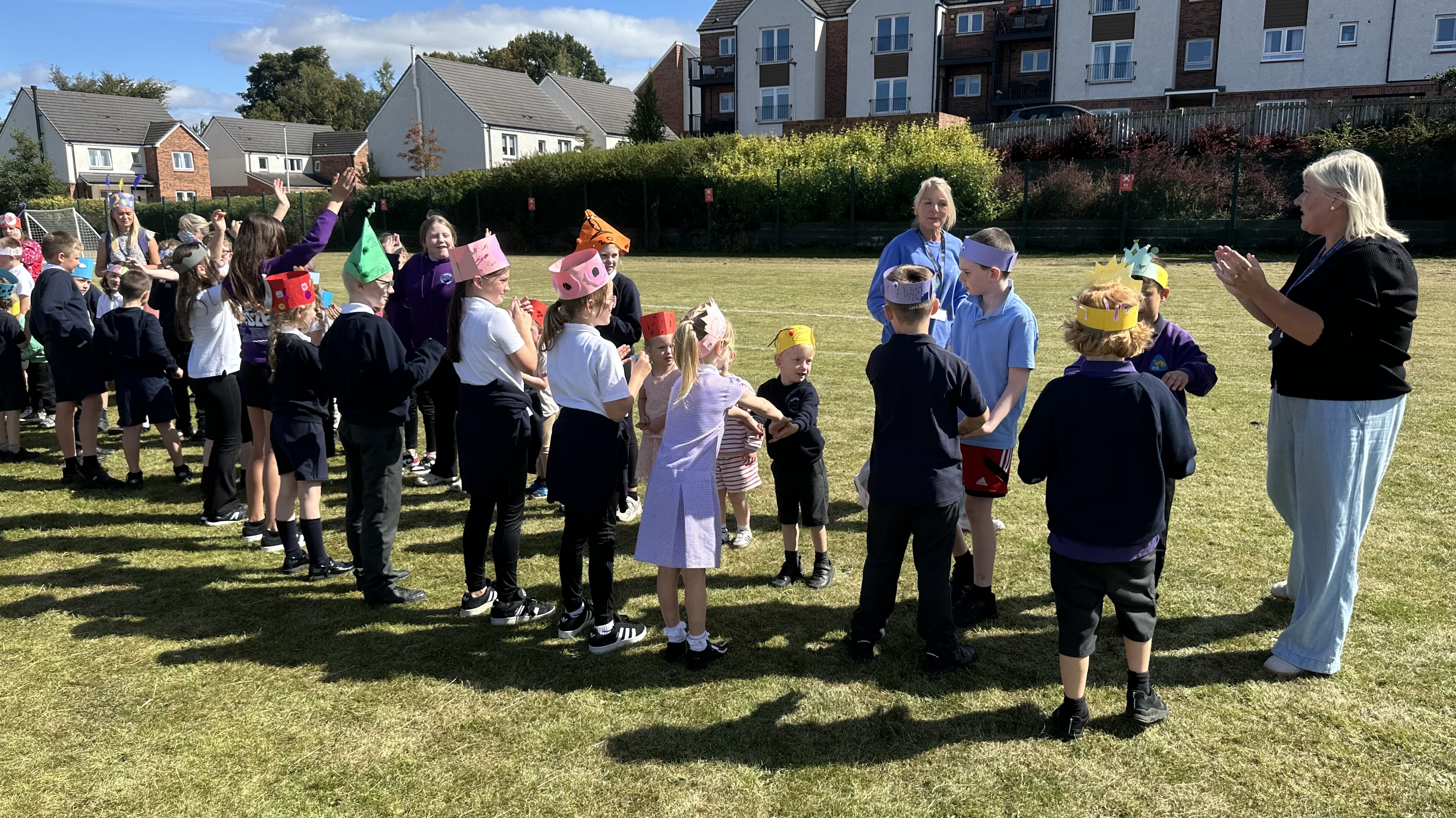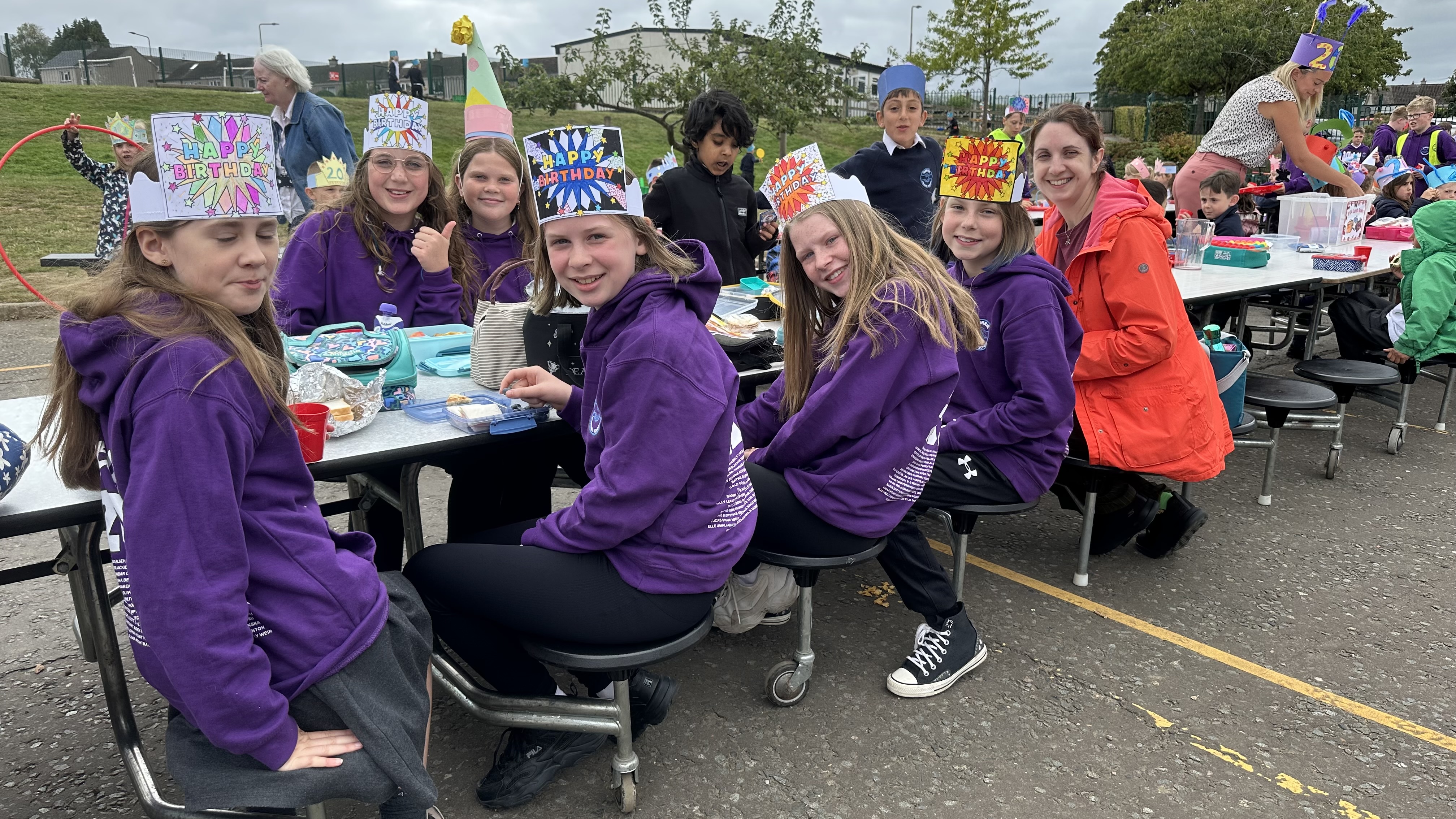 A lovely day in school today celebrating our 20th Birthday! Lots of work in classrooms around the number 20 and some of our older pupils wrote some poems too. We enjoyed lunch of party food, sandwiches, sausage rolls, mini quiche, fruit bags and birthday cake before a whole school birthday party on the field with games like Musical Bumps, Birthday Corners and The Grand Old Duke of York. We finished off by singing Happy Birthday before enjoying ice poles provide by our PTA.