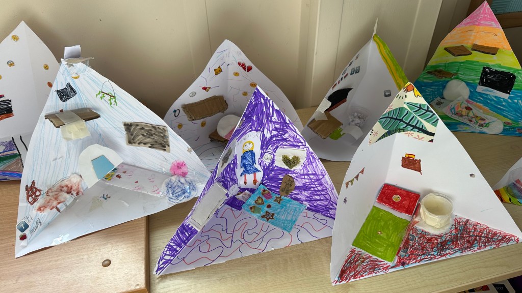 As part of their health and wellbeing work P4 have been making dioramas of their ideal safe space. The classes worked hard on these and they look amazing! We thought you might like to see some.